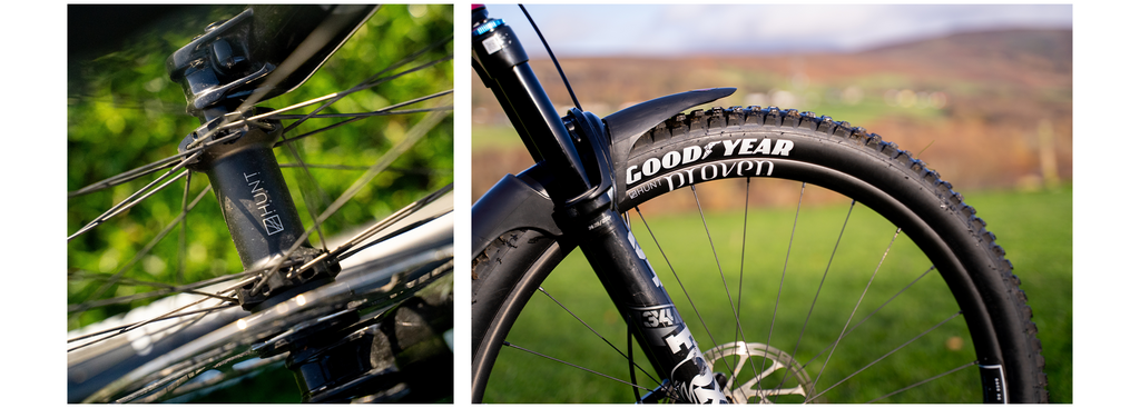 HUNT Proven Race XC wheels with steel spokes offer a great balance of low weight and strength, and are perfect for flying down off-piste descents before sprinting back up the fireroad for another spin. The 30mm internally wide, front and rear specific rims are shod with Goodyear tyres offering low rolling resistance with surprising levels of grip.