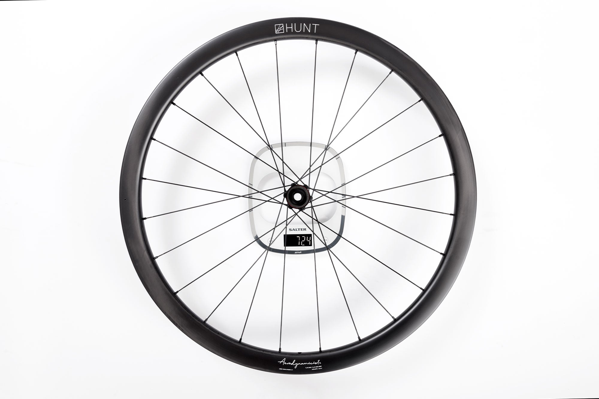 Rims34.5mm deep profile with a 28.4mm external width Lightweight rim layup strategy using T800 unidirectional carbon fiber with 3K weave re-enforced spoke holes for ultimate wheelset performance. Designed by HUNT’s in-house Engineering Team using Computational Fluid Dynamics (CFD) and then validated using wind tunnel testing. Aerodynamically optimized for a 28c – 30c tire The broad 22mm internal width provides good tire support and volume for excellent grip and low rolling resistance. Hooked 22mm internal profile allows a wide range of tires from 25mm-50mm to be fitted including tubeless or clincher tires in-line with ETRTO guidelines. H-Lock bead seat up-kick for secure tire fitment. UD rim finish with matte white decals.