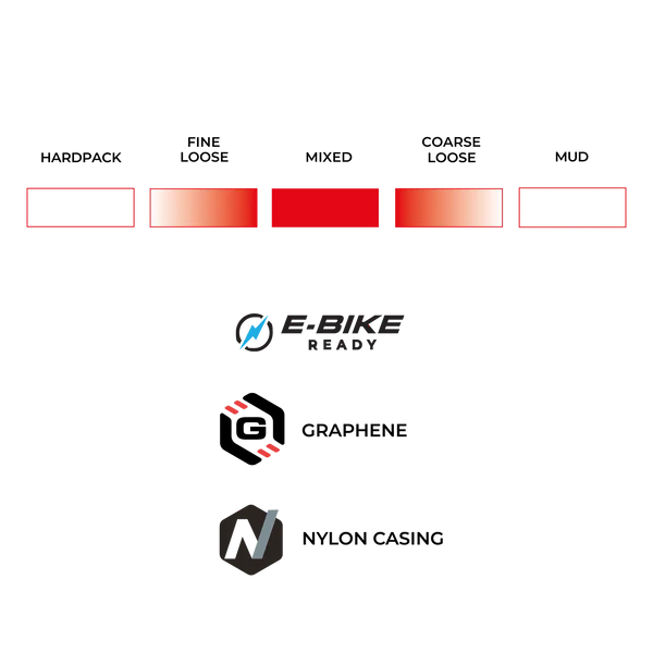 - Developed for maximum durability, grip, and longevity, this advanced rubber compound is infused with Graphene to boost performance across a wide range of conditions. Built for all-weather dependability and long-distance use, it ensures consistent traction and efficiency when it matters most.